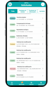 Sí, 100% legal. El empleado solicita cambios al responsable asignado, quien acepta o deniega. Todo el proceso queda auditado en el sistema y visible en informes detallados, cumpliendo normativa laboral (RD 8/2019). Transparencia total para inspecciones.