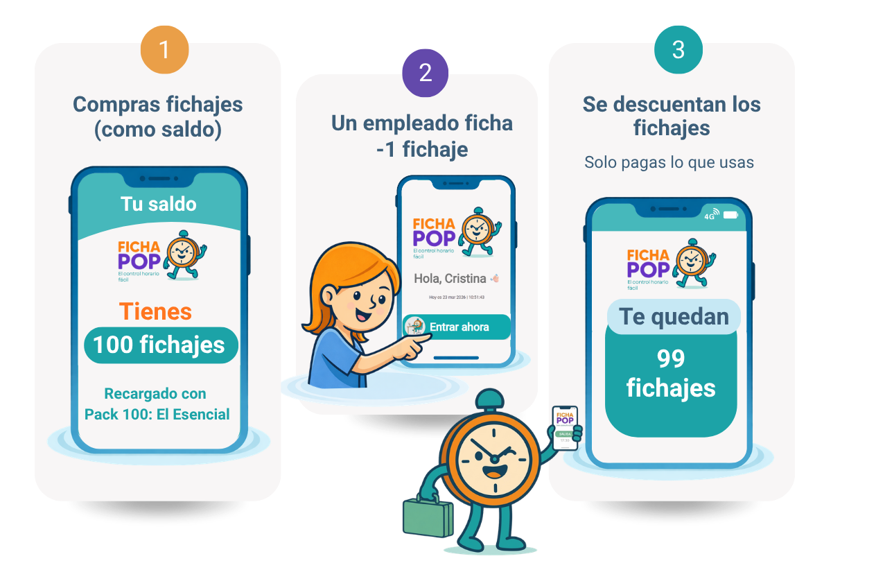 Pagas solo cuando tus empleados fichan.