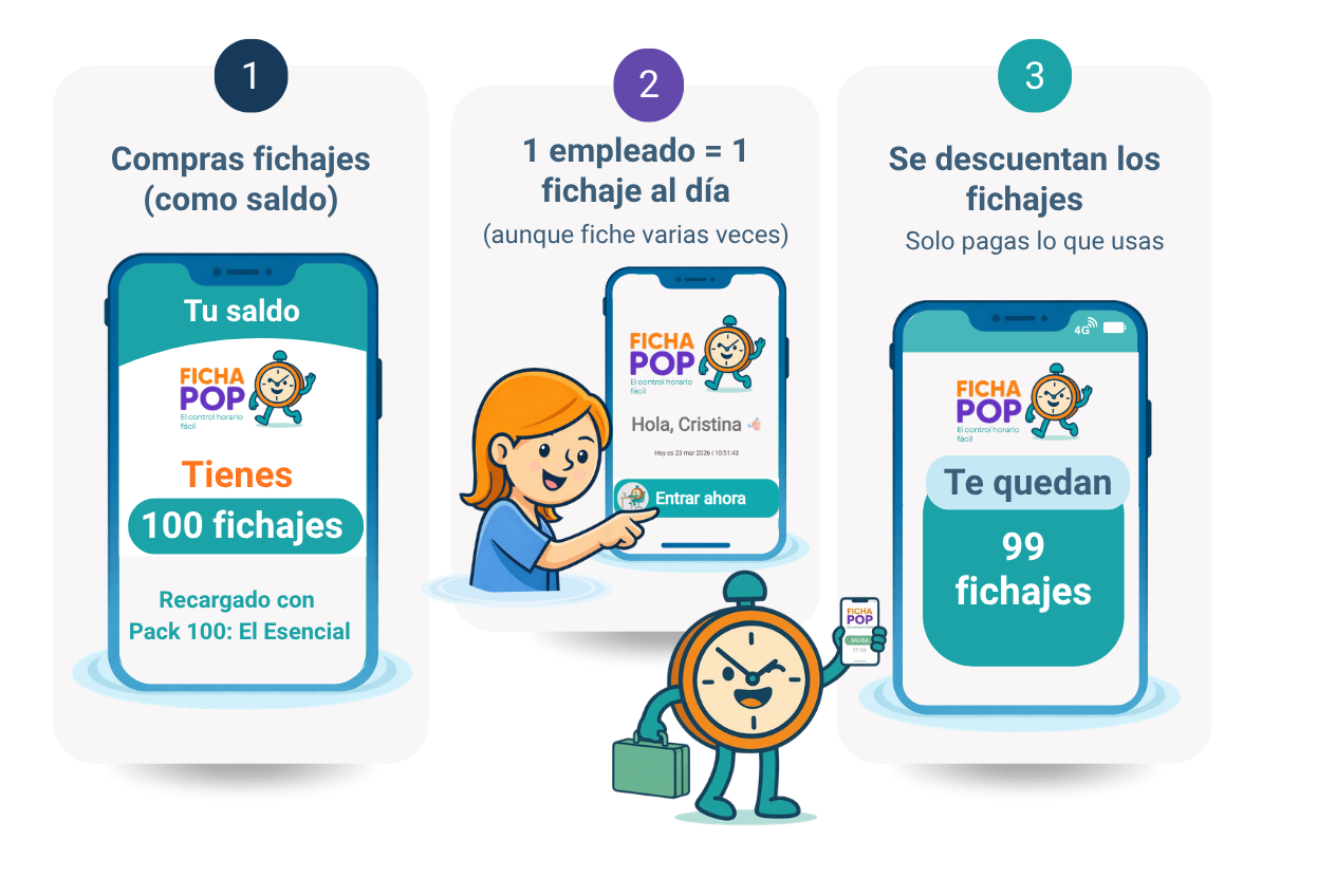 Sí. FichaPop cuenta con aplicación móvil para que los empleados puedan fichar fácilmente desde su teléfono. Es intuitiva, funciona tanto en Android como en iOS. También hay opción de conectarse desde un ordenador.